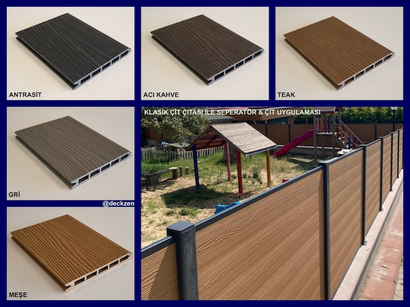 Ahşap görünümlü plastik kompozit çit ürünlerimiz inceliği ve birbirine geçme sistemi ile dekorasyonda zarifliği ve sağlamlığı ön plana çıkaran, yapılarınıza değer katan, yüksek yoğunluklu Polietilen ve organik ahşap tozu karışımından üretilen dekoratif kompozit çit modeli ürünlerimizdir.